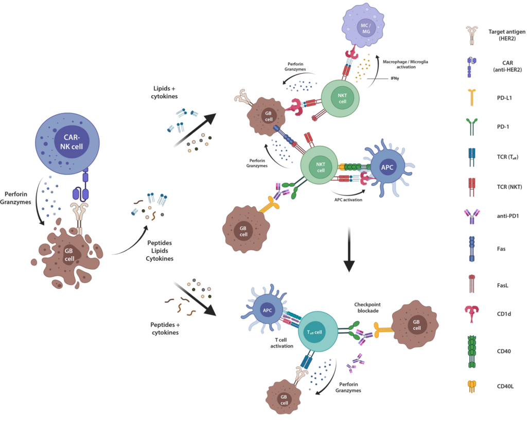 The role of NKT cells in the endogenous anti-glioblastoma immune response initiated by CAR-NK cell therapy