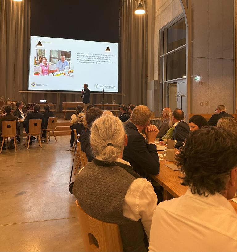 Dank eines beeindruckenden Vortrags unserer beiden Referenten Dr. Christoph Brase (Mitglied des Vorstandes der Anni Hofmann Stiftung) und Prof. Dr. Rainer Glaß (Neurochirurgische Forschung am LMU Klinikum München) konnten wir die Mission und die Projektarbeit der Anni Hofmann Stiftung einem interessierten Publikum näherbringen.